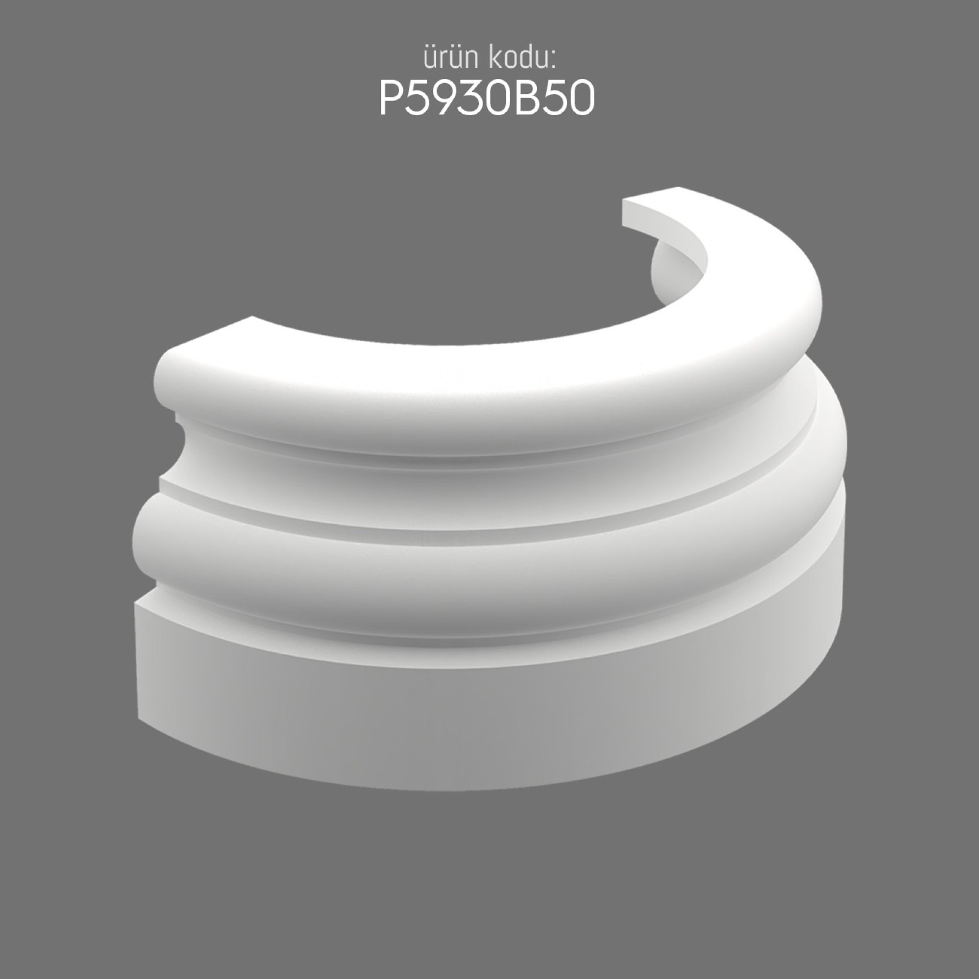 P5930B50 Sütun Alt Kaide, zarif çizgileri ve yuvarlak formu ile otellerde, geniş salonlarda ve iç mekan dekorasyonunda alanları ayırmak için kullanılır. Poliüretan malzemesi sayesinde dayanıklı, hafif ve kolay uygulanabilirdir. Antik Roma ve Yunan mimarisinden ilham alan sütun düzenlerinin modern yorumu olarak iç mekânlarda şıklık ve düzen sağlar. Kaide üzerindeki kademeli hatlar, derinlik katan bir görünüm verir. Özellikle otel lobileri, restoran girişleri ve büyük yaşam alanlarında dekoratif bir vurgu noktası oluşturur. Geçmişte sütun alt kaideleri yapıların görkemini artırmak için kullanılırken, günümüzde estetik ve işlevselliği bir araya getiren dekoratif unsurlar olarak değerlendirilmektedir.